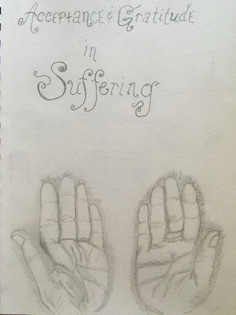 Acceptance and gratitude in suffering, the words today still bring me back to this time. This is a drawing I created only a year after I started drawing again… art became my escape
