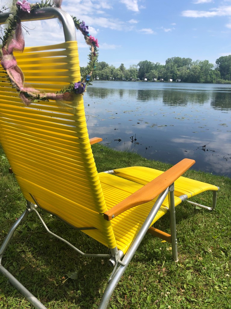 Recently, was thinking I would like a chair to put my feet up on while being in my favorite place. I didn’t think much more of it… then in a whisper on an early morning walk He simply let me know “I see you.” It caught my eye because of its golden color, sitting on the side of the road with a sign taped to it said FREE.